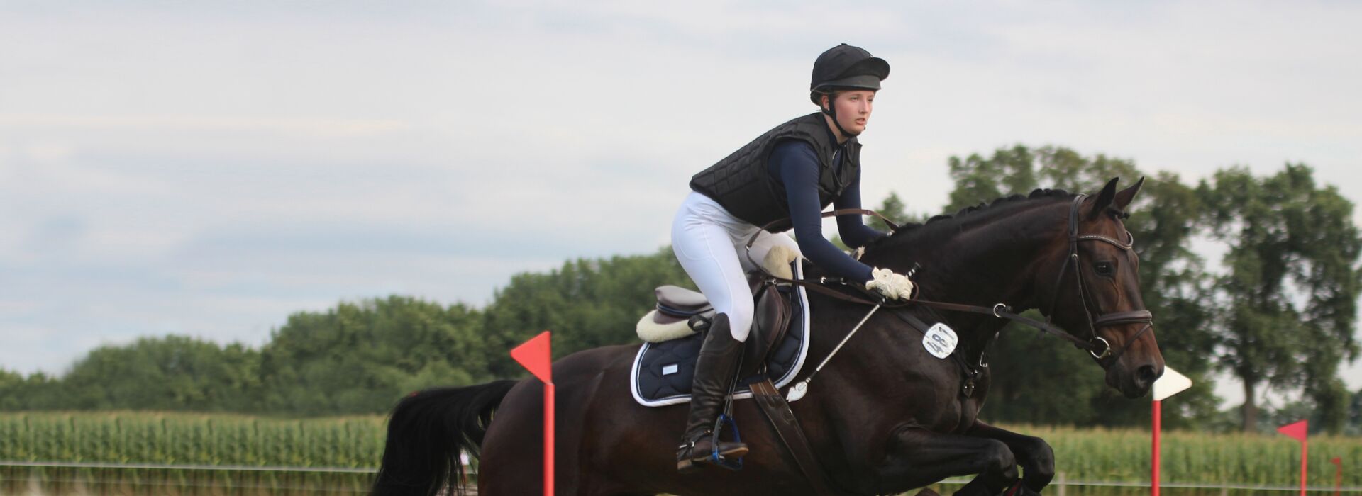 Das Vielseitigkeitsreiten vereint Übungen aus den drei Reitdisziplinen springen, Dressur und Geländereiten. Dementsprechend muss ein Vielseitigkeitsplatz auch mehr und andere Trainingselemente bereitstellen als ein klassischer Springreitplatz. Unser Vielseitigkeitspark Brüninghorstedt, den es bereits seit 2017 gibt und der direkt an den Hof anschließt, bietet allen Reiter*innen auf über 20.000 qm alles, was das Reiterherz begehrt. Geländesprünge für alle Leistungsklassen, Hügel, Gräben, Coffin (Hinderniskombination mit Senke und Graben) und Teich.
